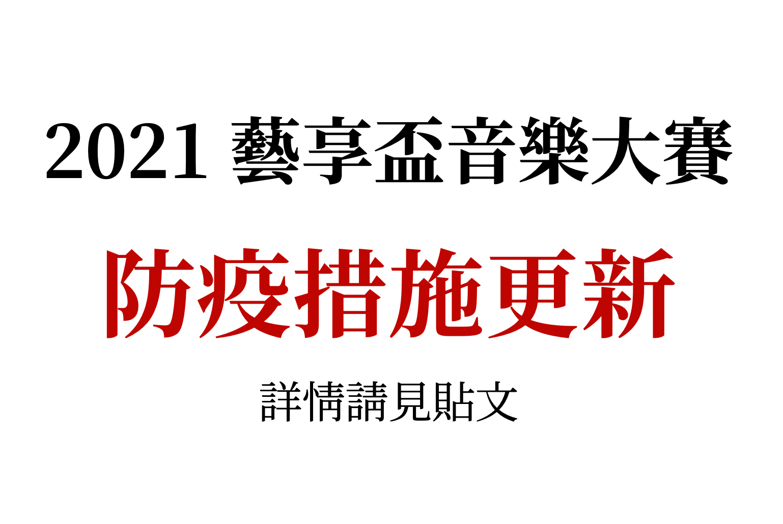因應中央疫情指揮中心防疫層級提升,即日起禁止室內100人以上集會,因此藝享盃音樂大賽防疫措施隨之調整,請所有參賽者配合以下規定: